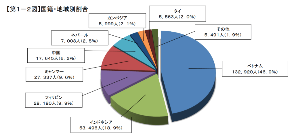 特定技能1号在留外国人数 1位 ベト132,920920人(46.9%) 投稿者:池田 哲郎2025年7月3日2025年7月3日カテゴリー:数字 特定技能在留外国人数 出入国在留管理庁 抜粋 https://www.moj.go.jp/isa/applications/ssw/nyuukokukanri07_00215.html 共有: X で共有 (新しいウィンドウで開きます) X Facebook で共有 (新しいウィンドウで開きます) Facebook LinkedIn でシェア (新しいウィンドウで開きます) LinkedIn いいね 読み込み中… 関連