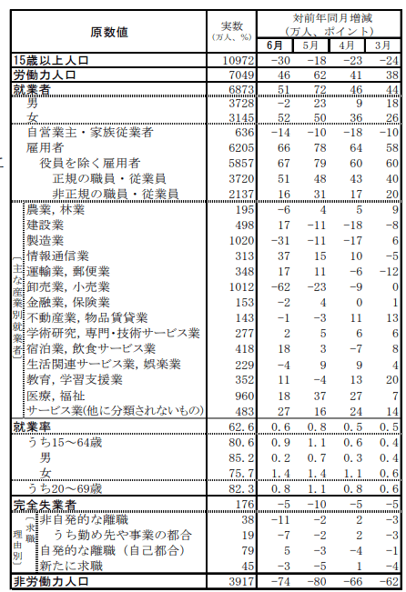 非労働力人口 3917万人 前年同月比 74万人の減少(40か月連続減少) 投稿者:池田 哲郎2025年8月2日カテゴリー:数字 労働力調査 (基本集計)2025年 (令和7年)6月分) 総務省統計局 抜粋 https://www.stat.go.jp/data/roudou/sokuhou/tsuki/ 共有: X で共有 (新しいウィンドウで開きます) X Facebook で共有 (新しいウィンドウで開きます) Facebook LinkedIn でシェア (新しいウィンドウで開きます) LinkedIn いいね 読み込み中… 関連