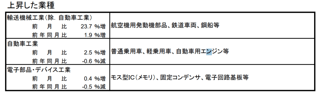 2025年8月 鉱工業(生産)指数 輸送機械工業(除.自動車工業)前月比 +23.7 % 前年同月比 +1.9 % 投稿者:池田 哲郎2025年10月20日カテゴリー:数字 2025年8月の鉱工業(生産・出荷・在庫)指数の動向(確報)経済産業省 抜粋 https://www.meti.go.jp/statistics/tyo/iip/result-1.html 共有: X で共有 (新しいウィンドウで開きます) X Facebook で共有 (新しいウィンドウで開きます) Facebook LinkedIn でシェア (新しいウィンドウで開きます) LinkedIn いいね 読み込み中… 関連