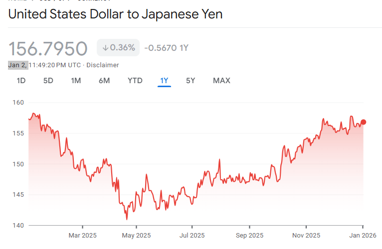 ドル円為替レート 156.7850円(2Jan 11:46:20 PM 参考値) 投稿者:池田 哲郎2026年1月3日カテゴリー:数字 Google Finance 抜粋 https://www.google.com/finance/quote/USD-JPY?sa=X&ved=2ahUKEwie3b2cg-6RAxVaafUHHWsVAt0QmY0JegQIDRAv&window=1Y 共有: X で共有 (新しいウィンドウで開きます) X Facebook で共有 (新しいウィンドウで開きます) Facebook LinkedIn で共有 (新しいウィンドウで開きます) LinkedIn いいね 読み込み中… 関連